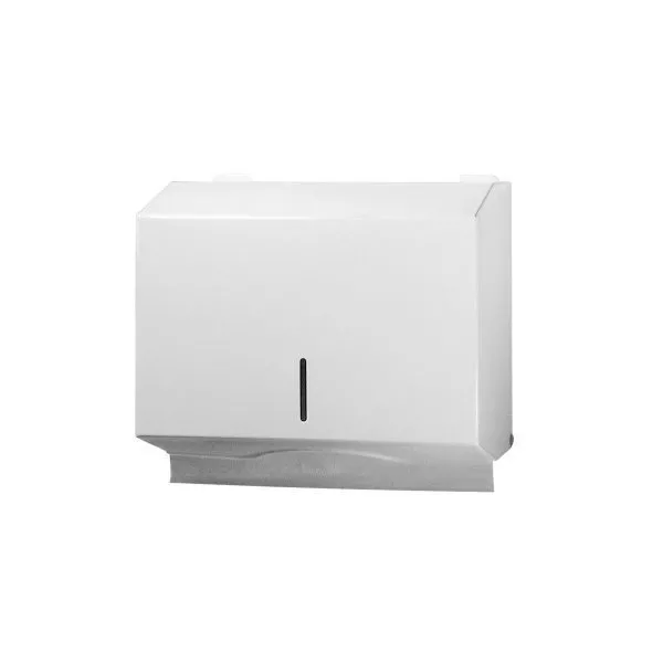 Der abschließbare Falthandtuchspender racon MW S ist aus weiß lackiertem Metall gefertigt. Er verfügt über eine Füllstandanzeige und ein Zylinderschloss. Racon MW S eignet sich für alle marküblichen Falthandtücher in ZZ-Falz, Lagenfalz und Interfold. Das Fassungsvermögen beträgt 250-400 Tücher.
