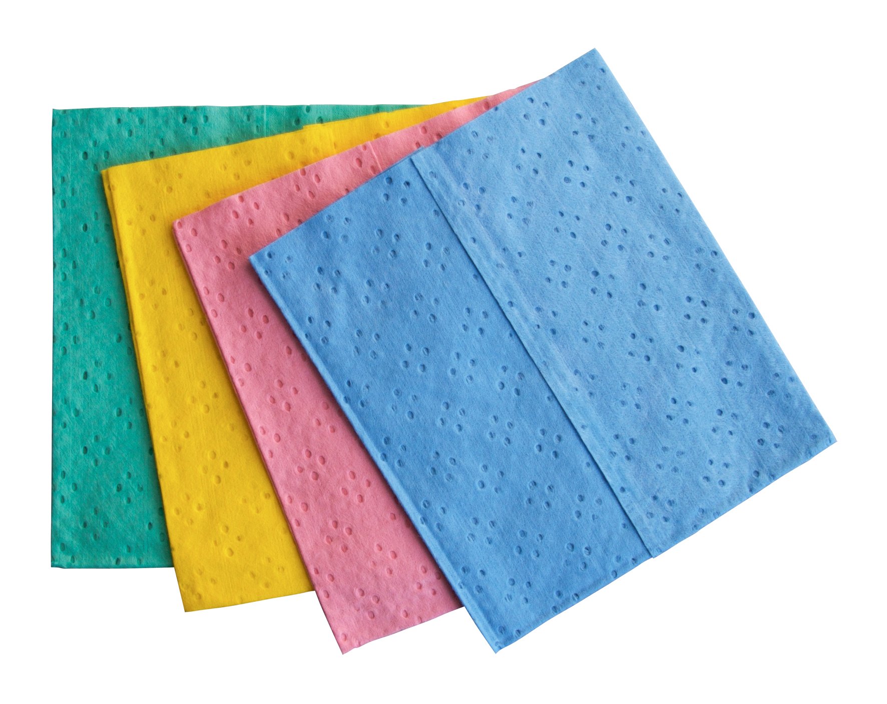 Textile-like cleaning and polishing cloth with perforated structure made of 100% viscose fibers. Particularly soft, tear-resistant, and highly durable. It is absorbent, wringable, reusable, solvent-resistant, and silicone-free. Color coding ensures easy classification of application areas. Certified for direct food contact (ISEGA certificate).