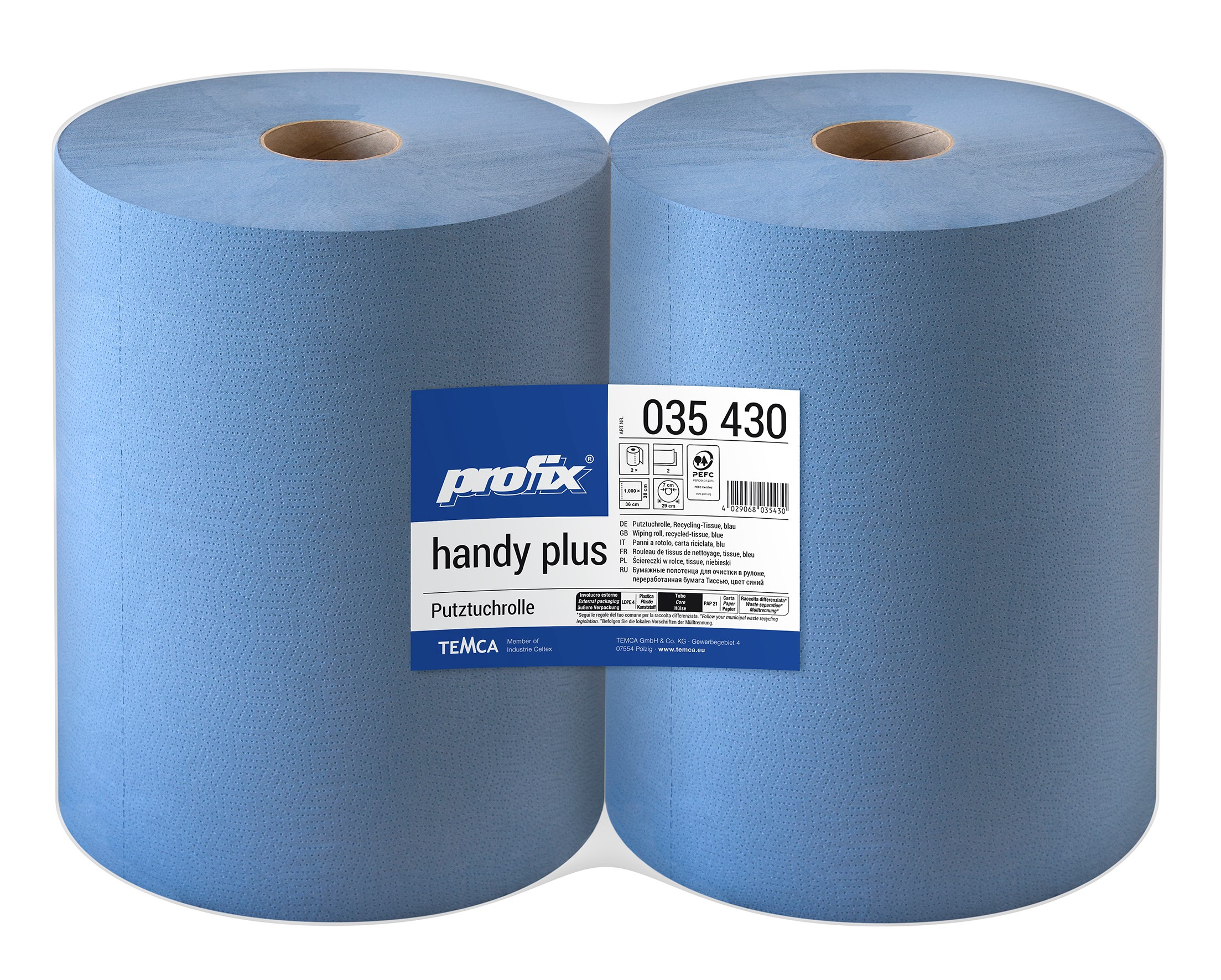 Die Zwischenblattverleimung des zweilagigen Tissue profix handy plus verschafft den Tüchern eine bessere Saugkraft und Reißfestigkeit. Das wirtschaftliche Wischtuch eignet sich für leichte Wischvorgänge. Durch Volumenprägung vergrößert sich die Aufnahmekapazität des Tuches. Die Verwendung von Recycling-Tissue macht es zu einer umweltfreundlichen Wischtuchalternative. Profix handy plus ist besonders reißfest und als Handtuch- bzw. Putztuchrolle verfügbar.